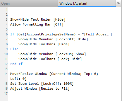 Filemaker 16 da yukarıdaki Script tanımlanırsa ekran bu şekilde gözüküyor.