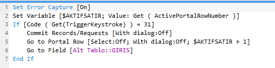 Set Variable [ $PortalSatirNo; Get ( ActivePortalRowNumber ) ]