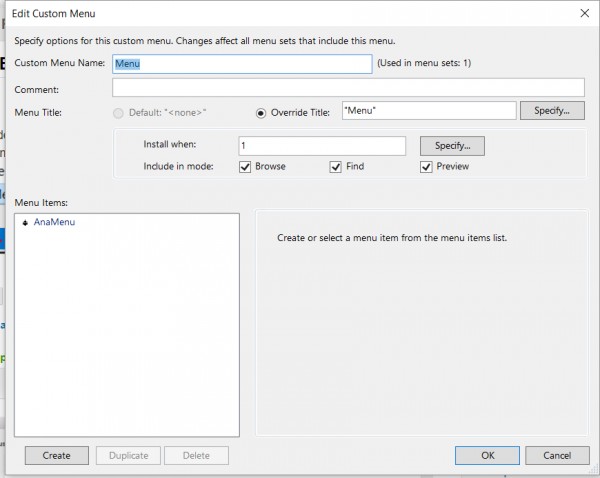 Costum menu görüntüsü aşağıdaki gibidir. Normalde sadece AnaMenu var. Fakat FM otomatik ekliyor.