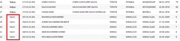 Bir listem var burada kişi tipleri var.Yetim,Bağışçı,vs...