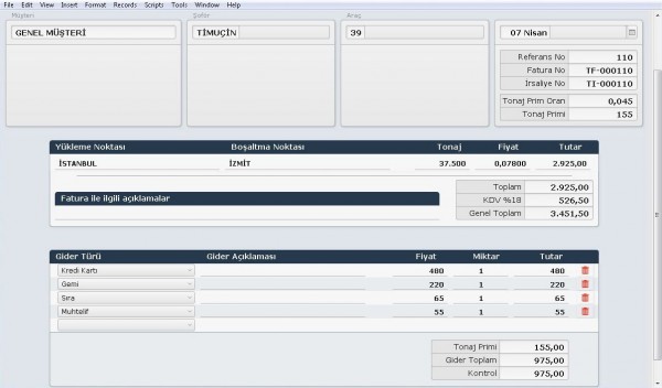 8- En baştaki "Tarih" ve "Seferler" tablolarındaki alanların içerdiği veriler mesela "Hakediş" isimli bir layoutta (tablosu "Seferler") raporlama-değerlendirme amaçlı kullanılabilir vs vs...