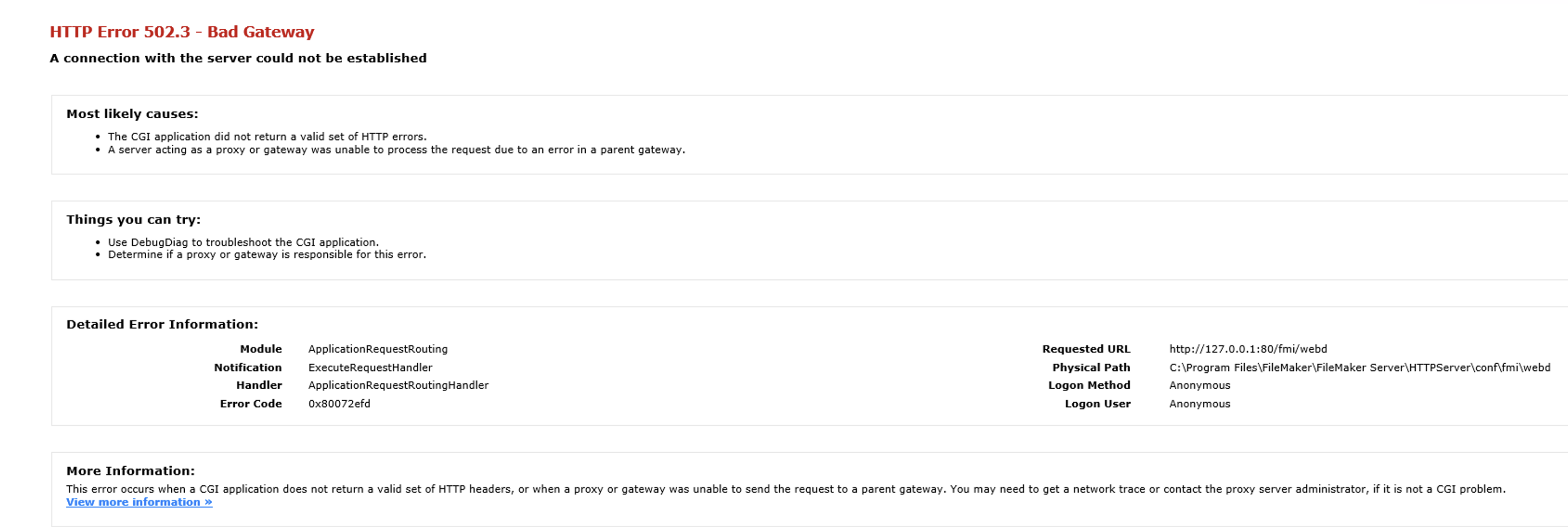 Filemaker 19 server 502.3 hatası