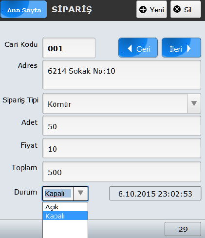 Hazırladığım uygulama su sipariş için bir uygulama ve gün içinde siparişler verilecek teslim edilen ürünler "Kapalı" teslim edilmeyenler için ise "Açık" seçeneği olacak. Ancak ben bir rapor hazırlamak istiyorum ve bu raporda sadece Açık olanlar görünsün istiyorum.