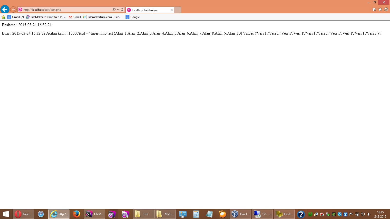 PHP de max_execution_time sınırı olduğundan 10 bin kayıt açarak testimizi tamamladık.